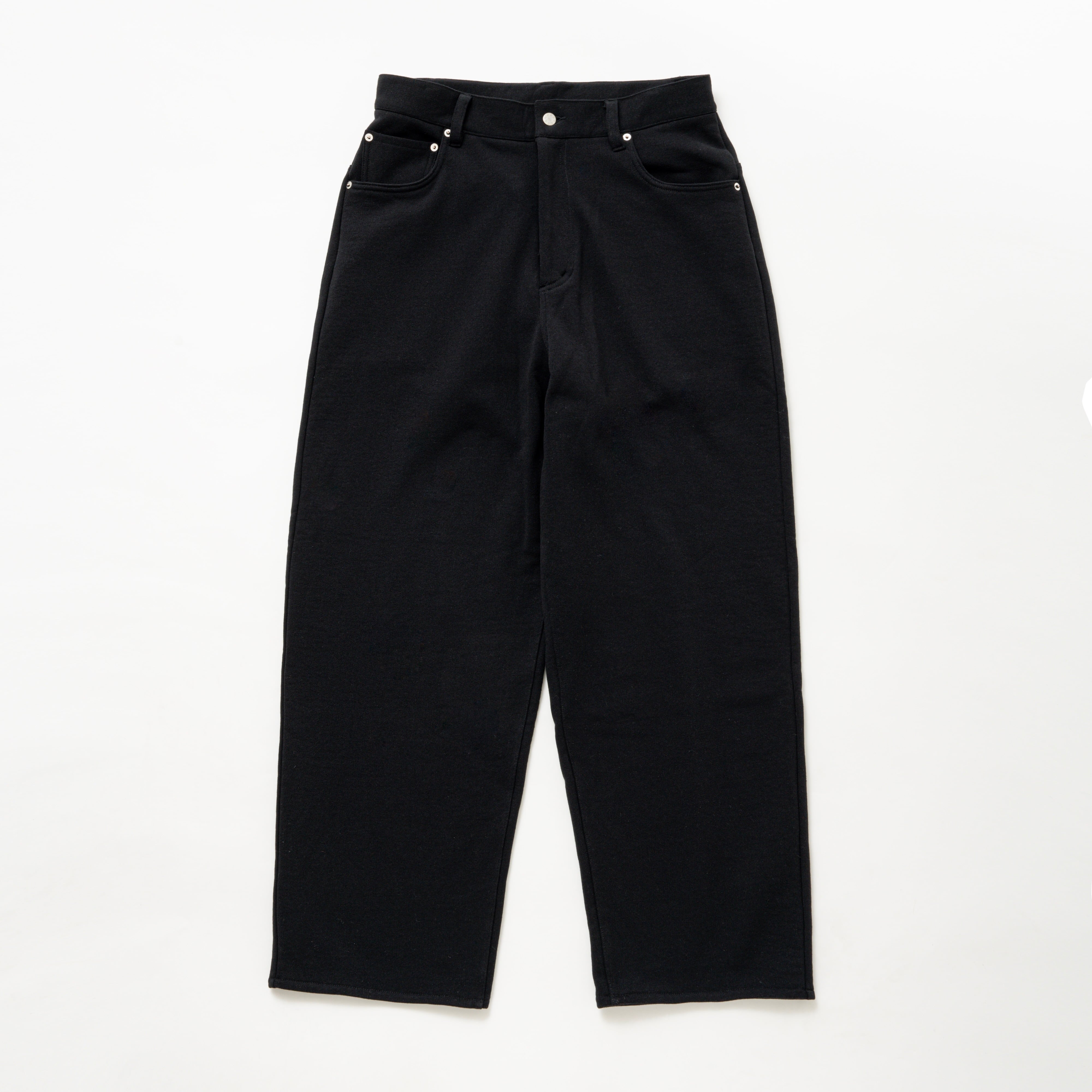 5ポケットパンツのシルエットをスウェットパンツに落とし込んだ1本。脚のラインを拾わない太めのワイドシルエット。ウエスト部分はゴム仕様でないため、リラックス感がありつつも、カジュアルすぎない印象に。