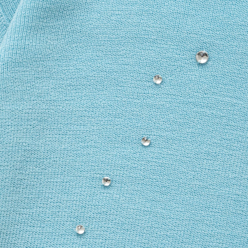 スーパーファインメリノウールを原料に使用した糸。2/60の細番の糸を16GGのハイゲージで編むことで編み目が非常に細かくなるので、柔らかな肌触りと細番ウール特有の光沢感もある着心地の良いニットに仕上げている。