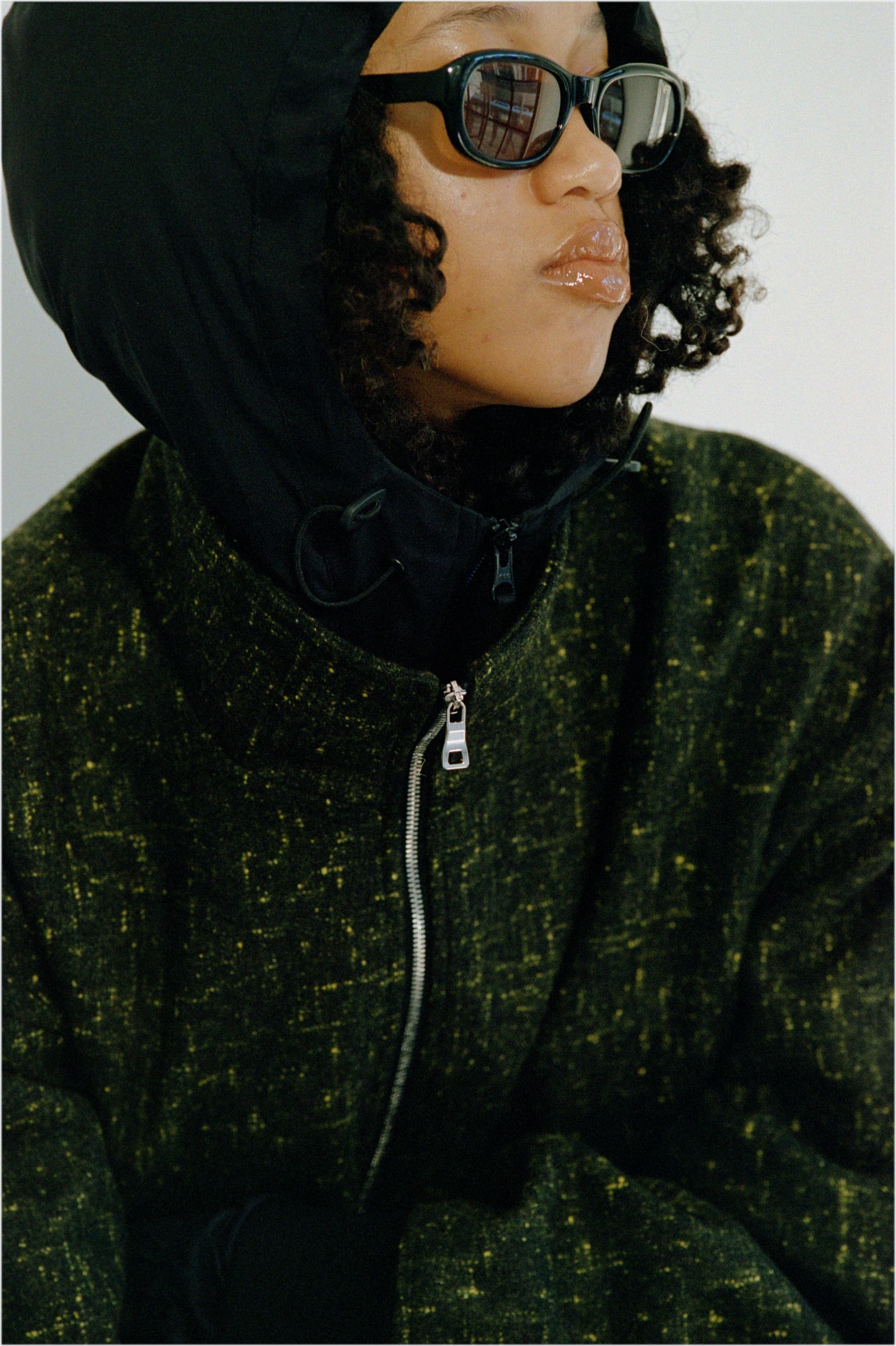 BO NOTTO が作るこのドネガルツイードは、粗野な見え方に対して、上質なウールにカシミアをいれて柔らかく暖かい手触りのコントラストが特徴的であり質感を高める素材。