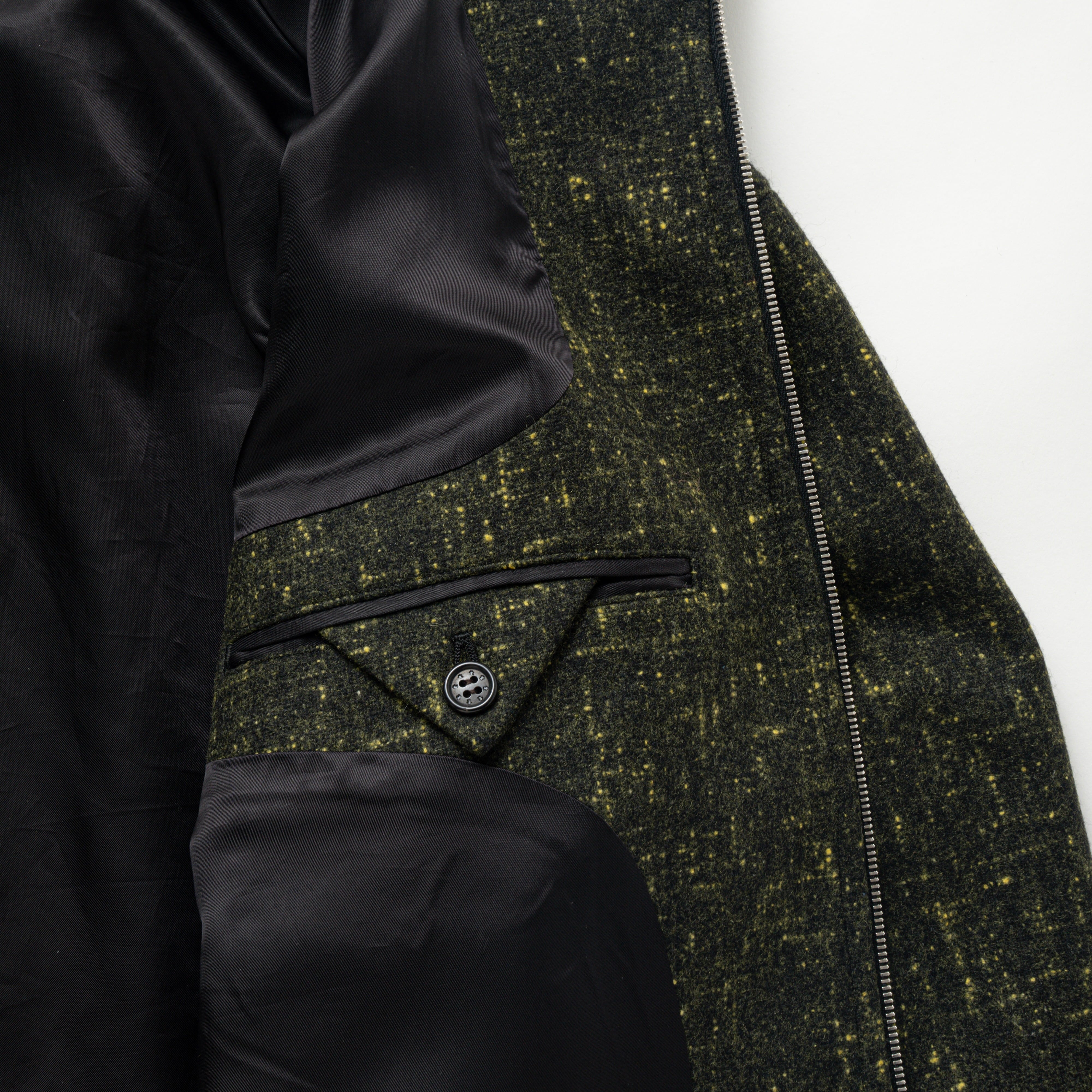 ジャケット裏面は、総裏仕立て。リブ部分は、ウール素材を使用。