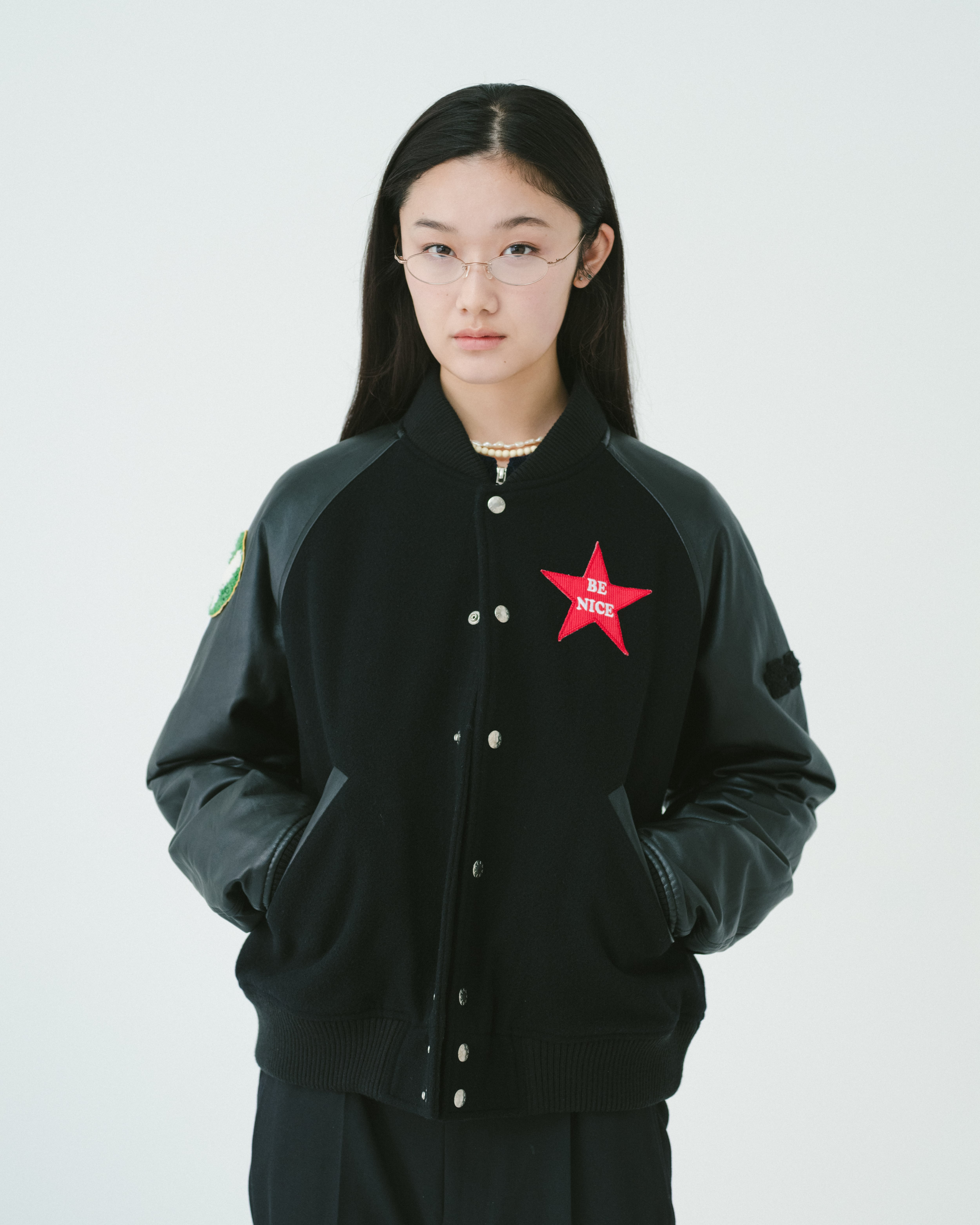 MATERIAL:【Body】wool100% 【Sleeves】ram leather 100% 【Lining】polyester100%