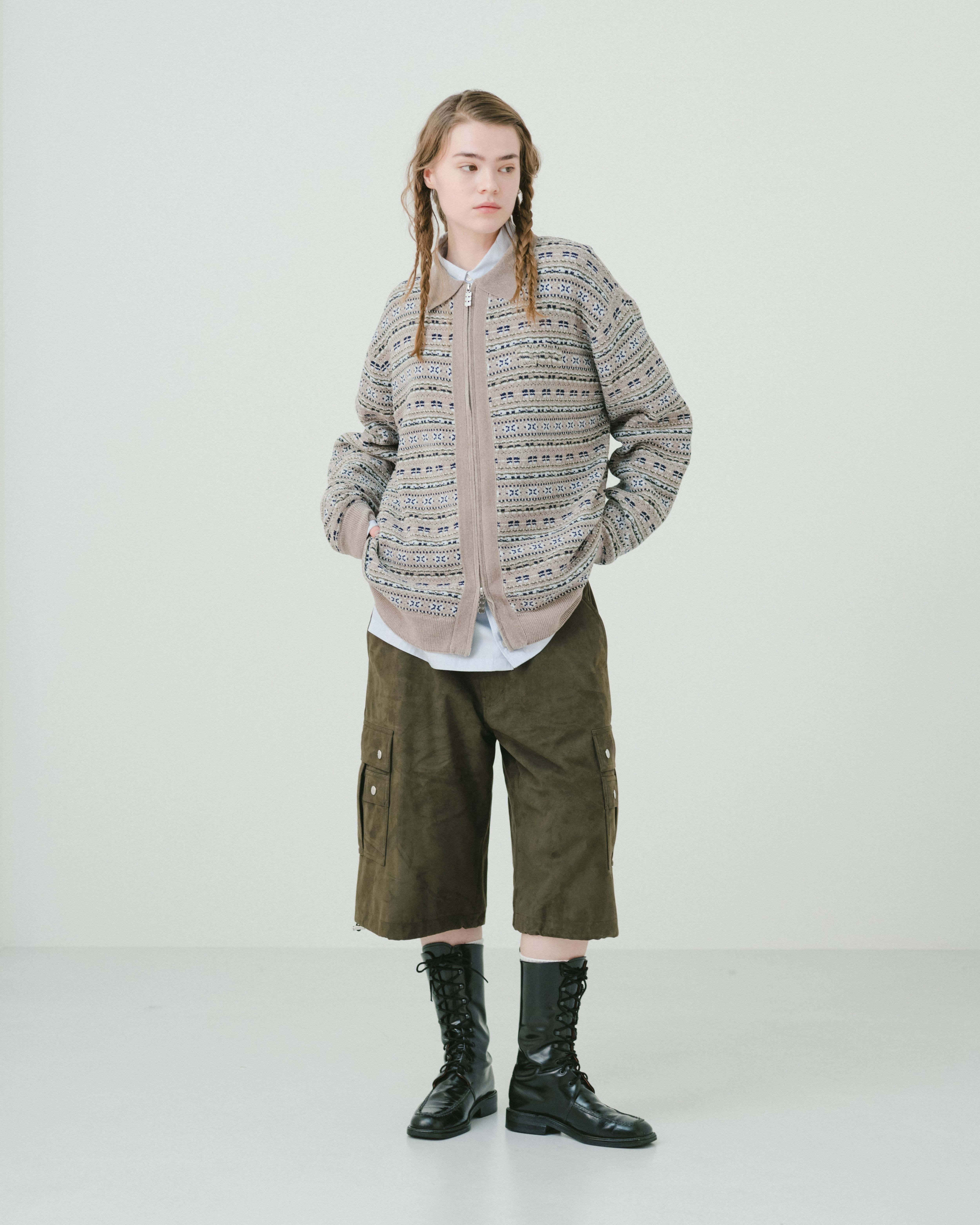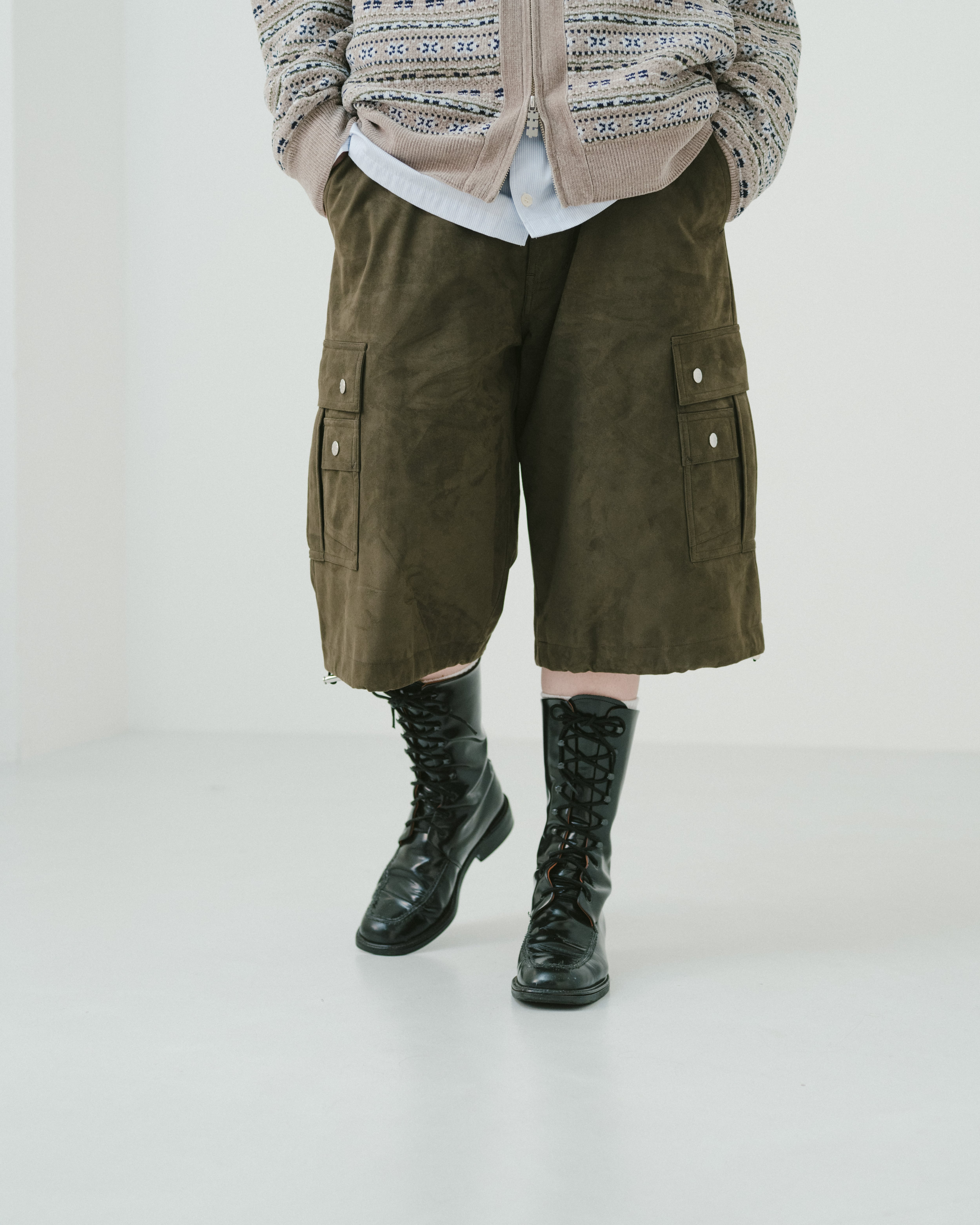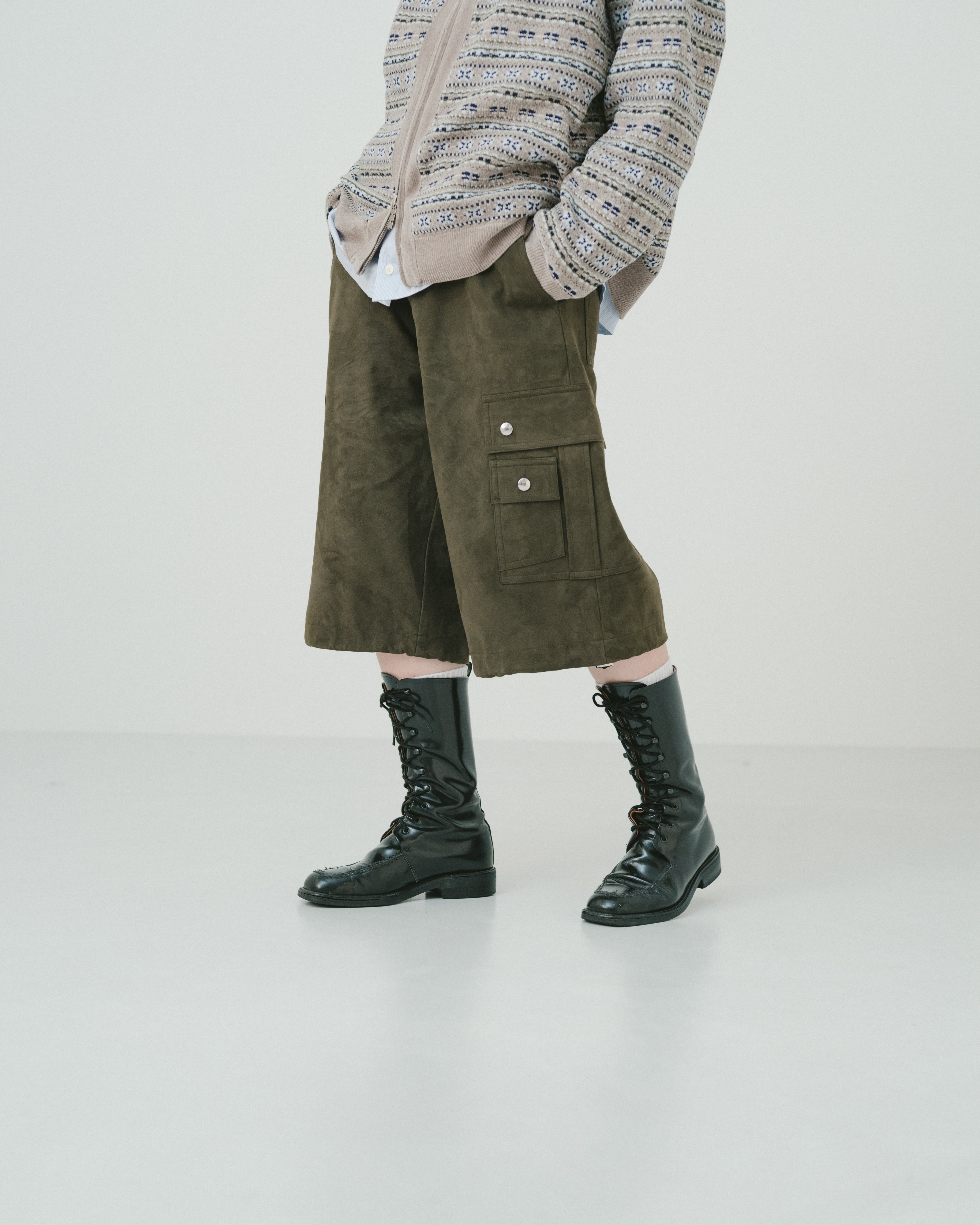 Suède military cargo half pants(KAHKI)
