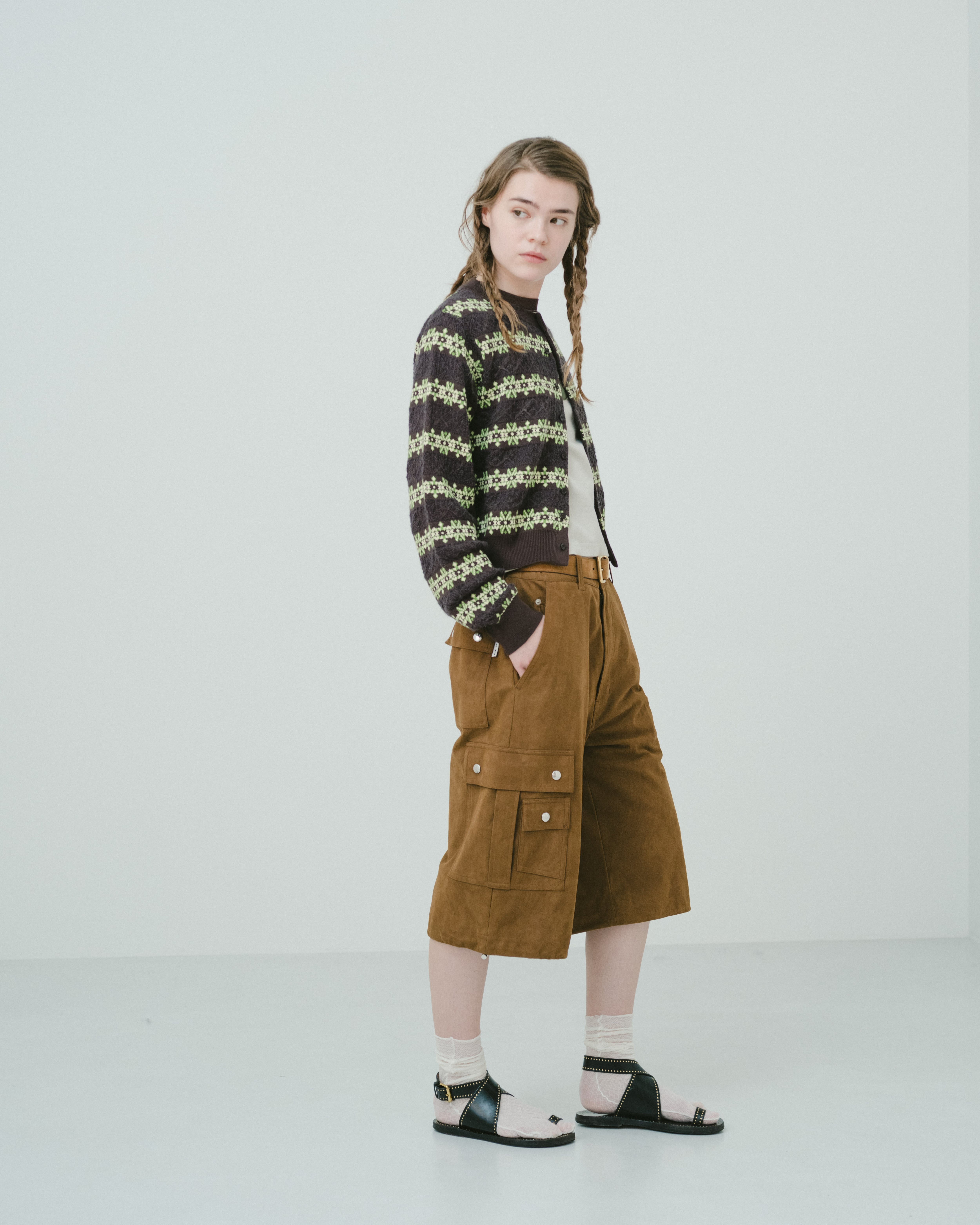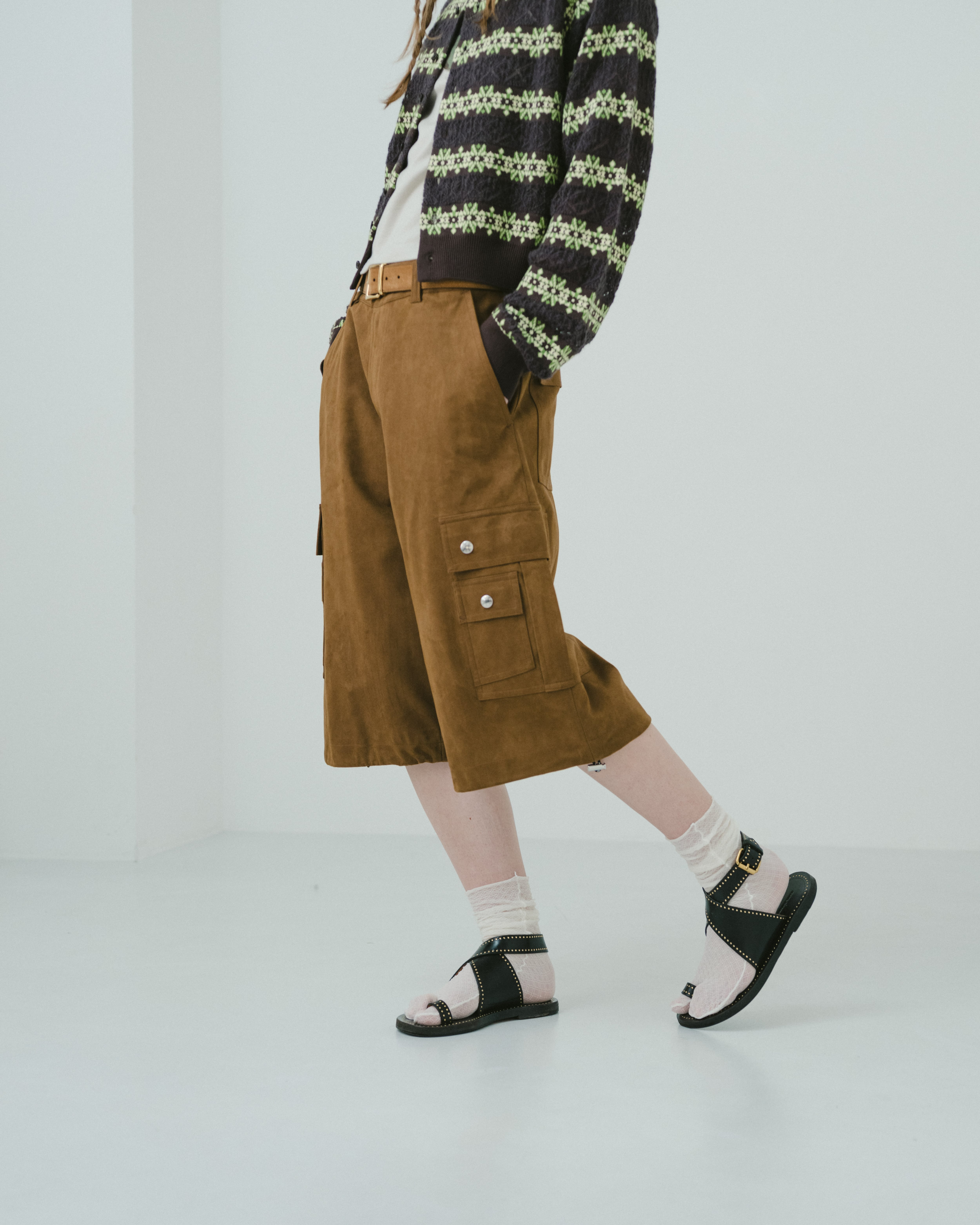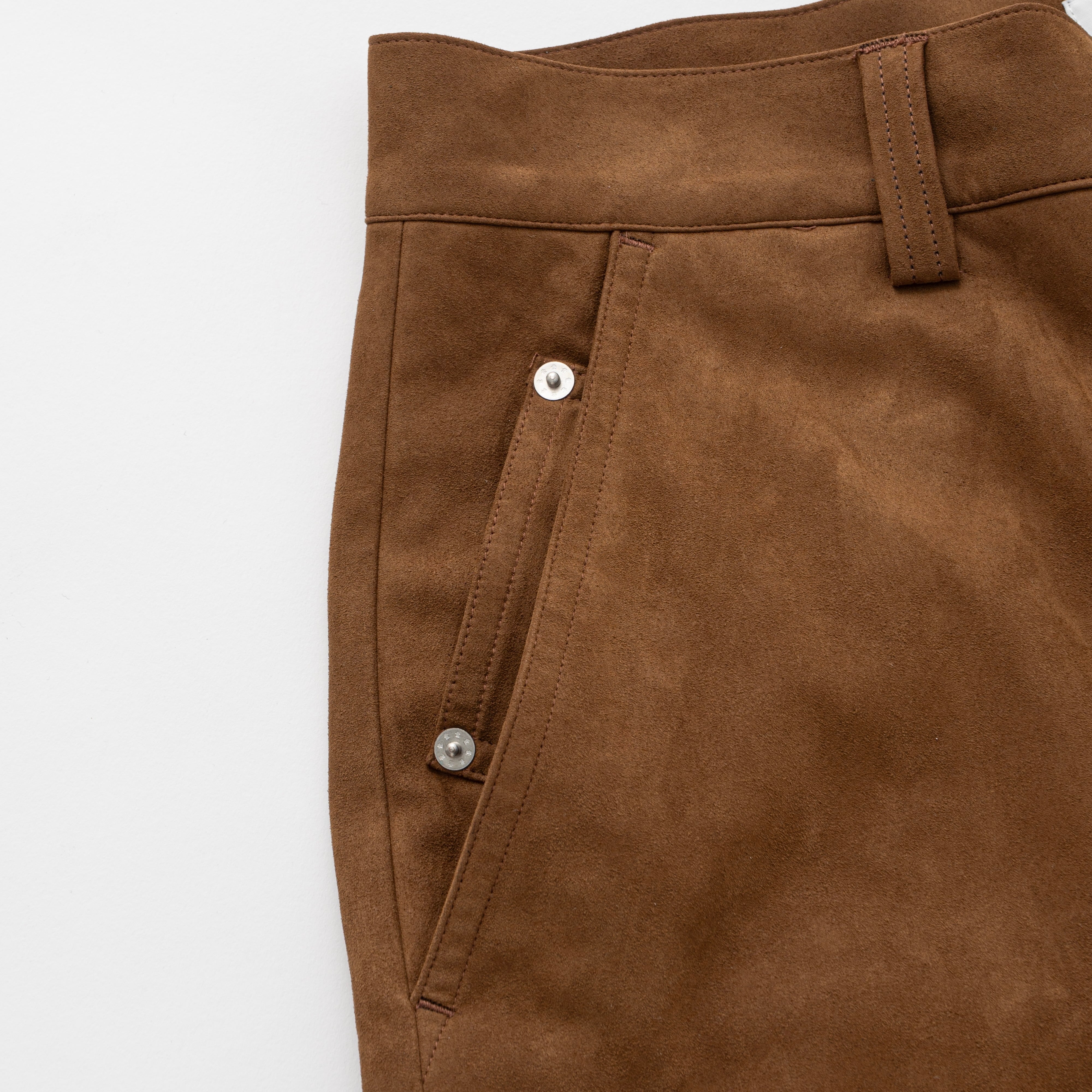 超極細繊維を使用した上質な人口皮革。天然皮革のような柔らかい肌触りを実現しながら、軽量であることが特徴。裾はドローコードで調節可能。