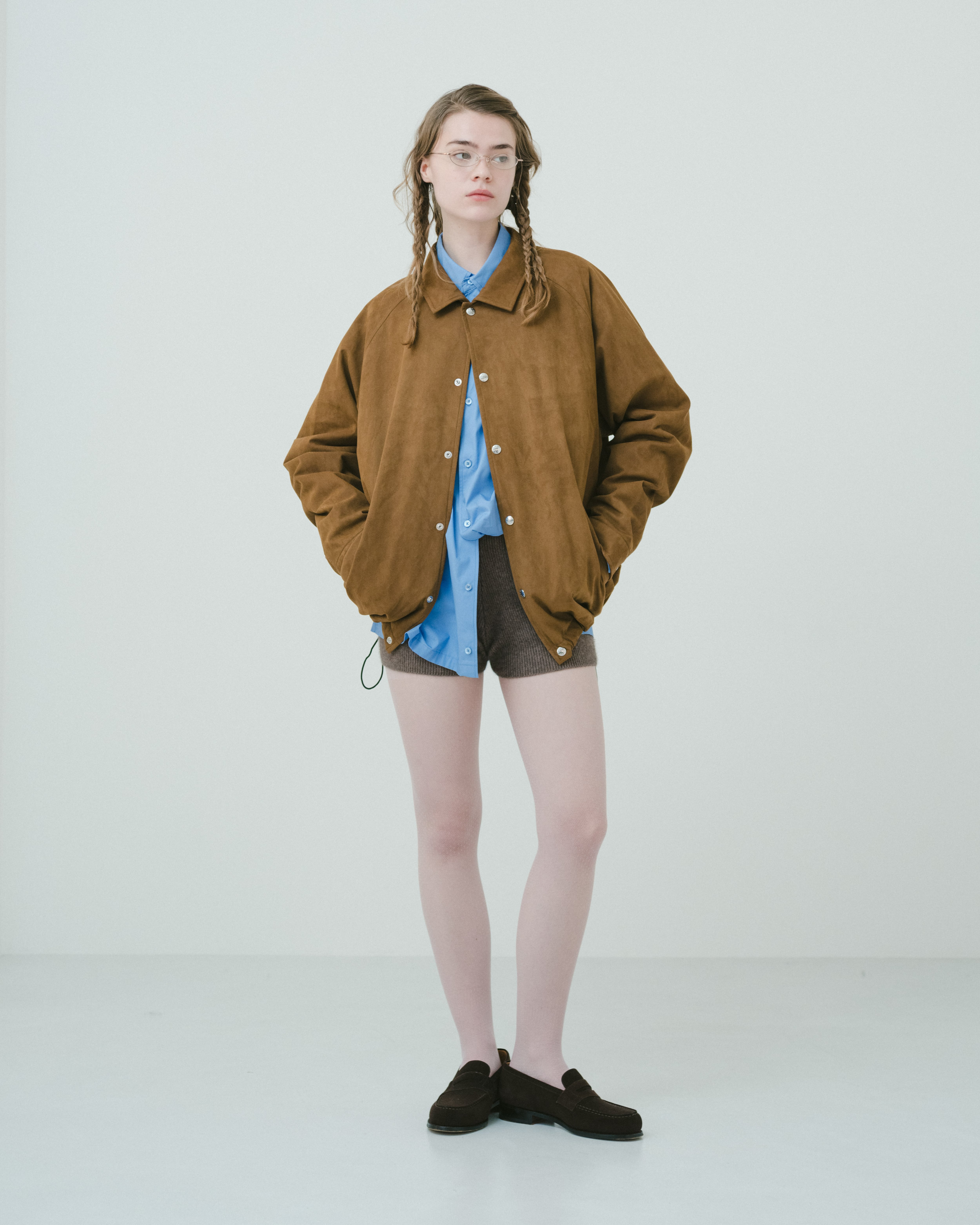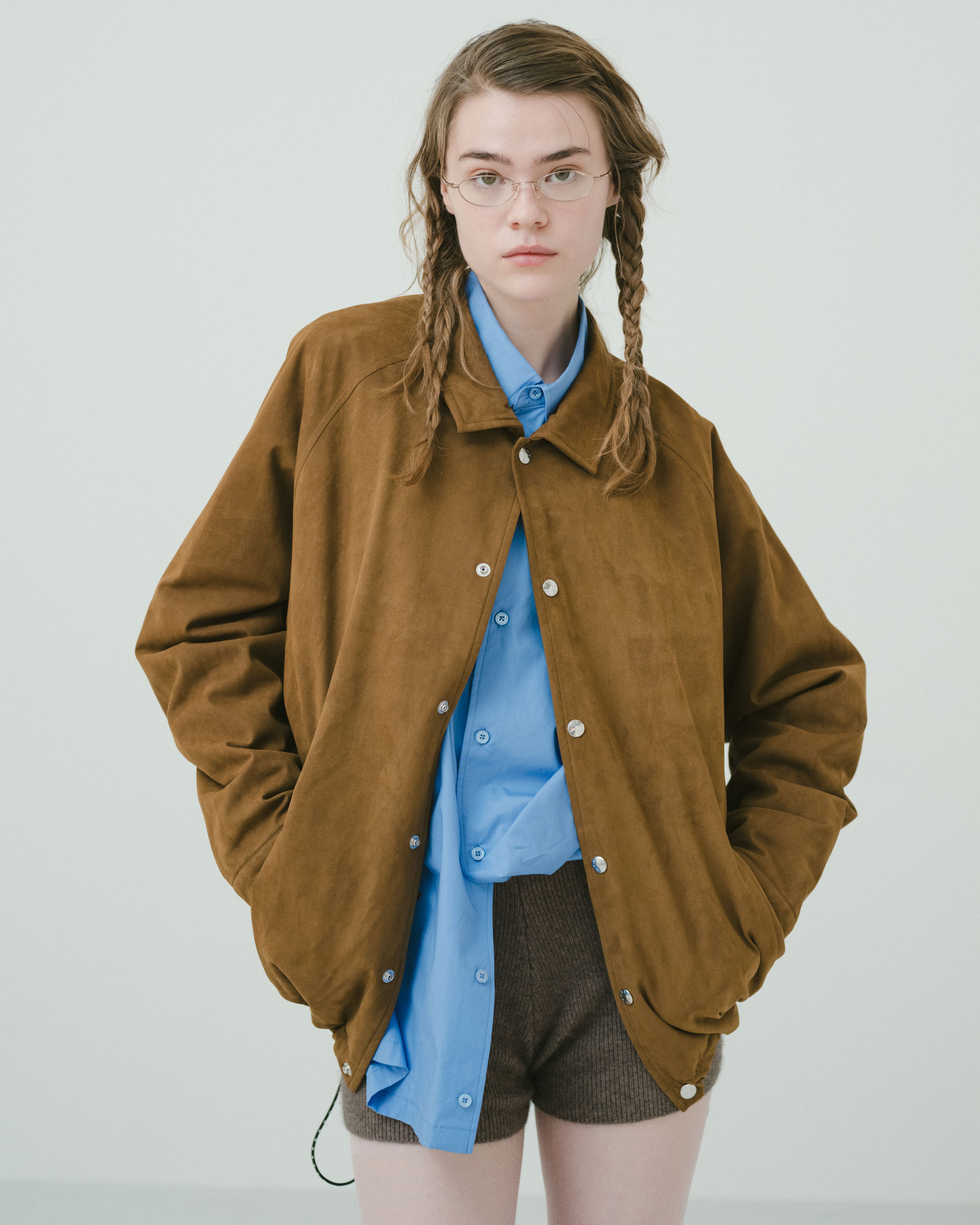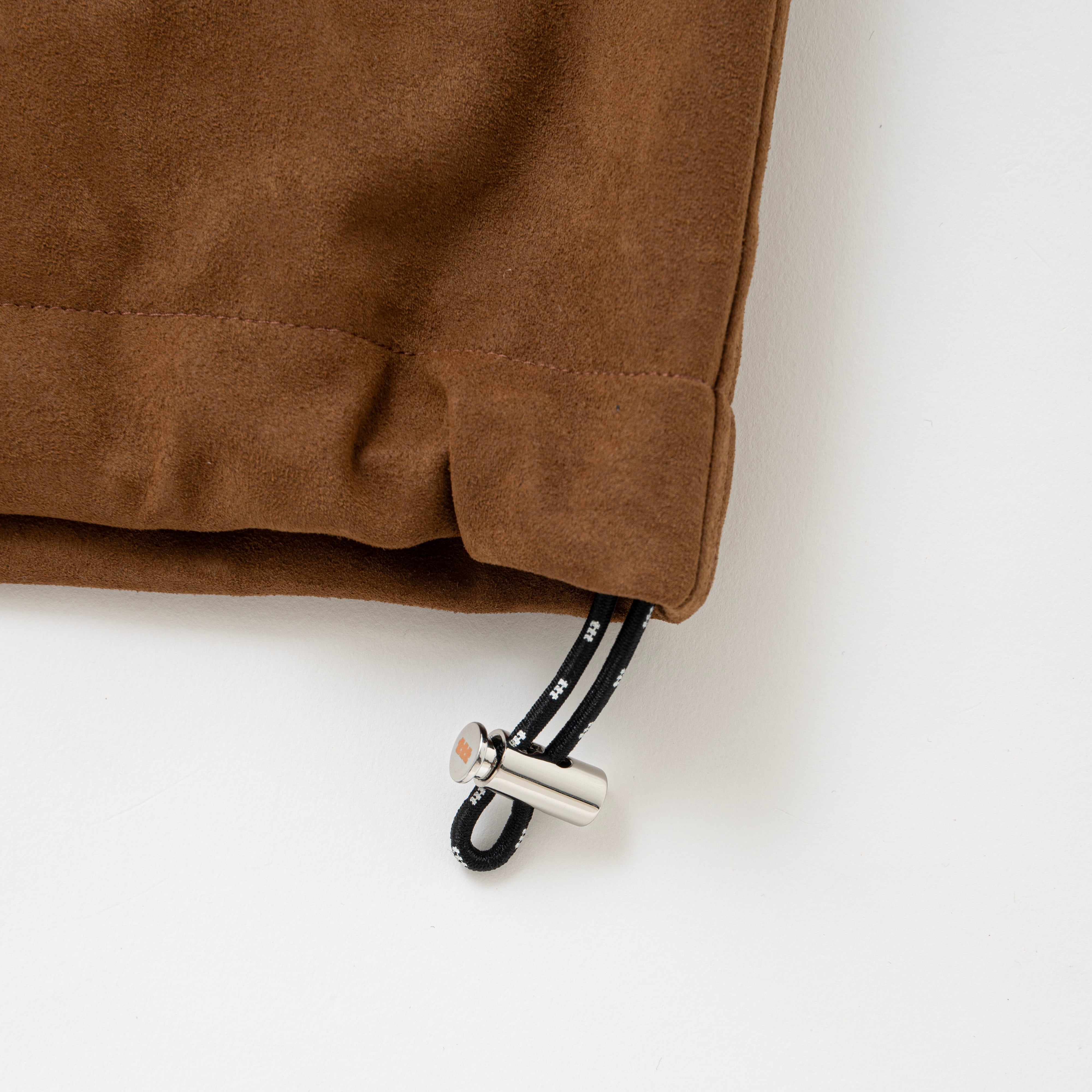 超極細繊維を使用した上質な人口皮革。天然皮革のような柔らかい肌触りを実現しながら、軽量であることが特徴。裾はドローコードで調節可能。