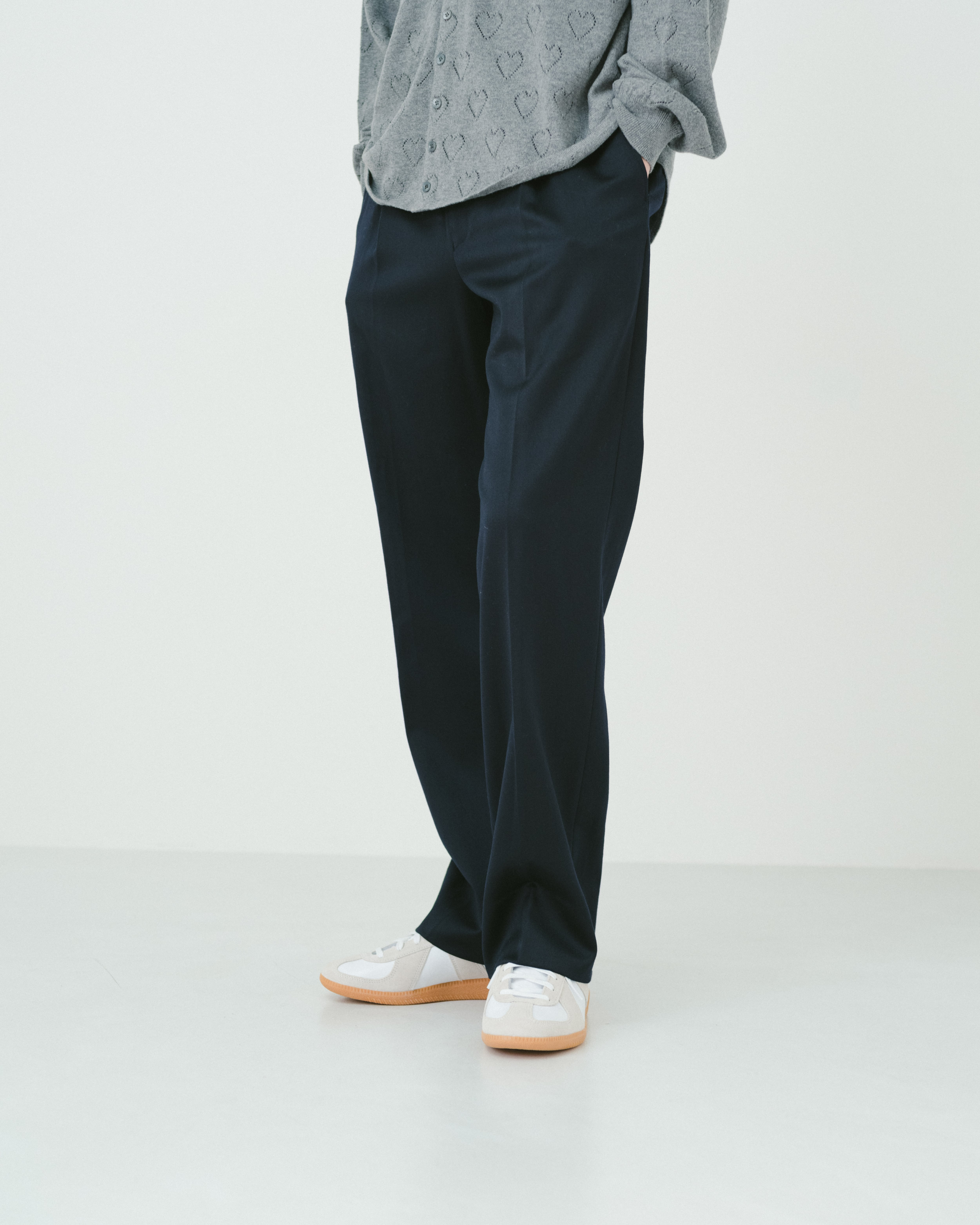 グルカパンツは、ネパールのグルカ兵が着用していたものをルーツに持つため、ミリタリーものに多く使用されるが、今作は上品さを兼ね備えたシルエットや軽量だがウールの温かみを残した素材感が特徴。