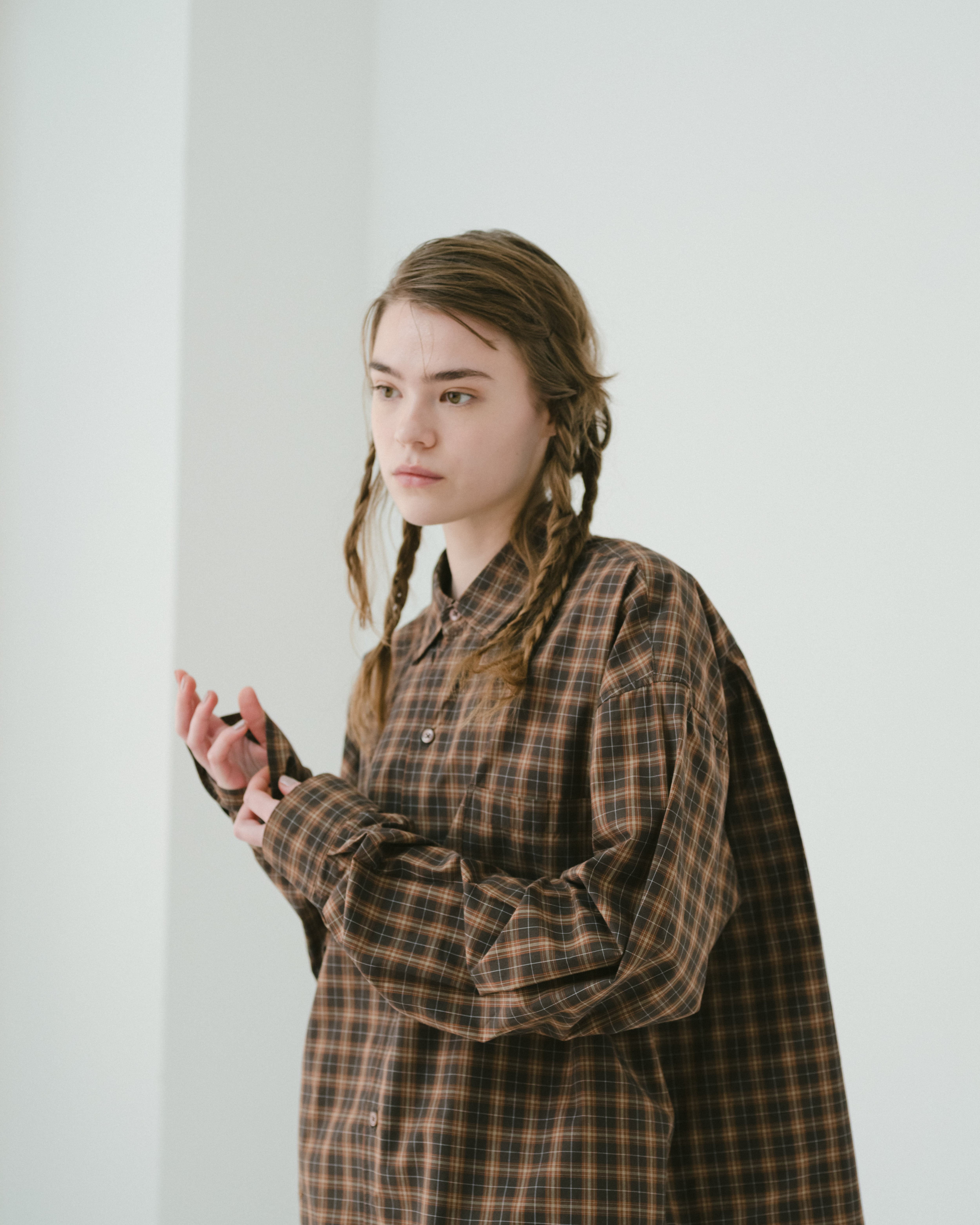 定番デザインのレギュラーカラーシャツだが、手書きデザインのtttロゴ刺繍が、柔らかい印象を与えてくれる1着。