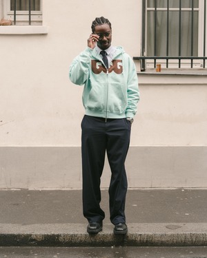 newデザインのwave logo をモチーフにした1着。セットインスリーブ で定番シルエットではあるが、裾のゴムが効いているため、メリハリのあるシルエットが特徴。ロゴ部分は、フリース素材を使用。