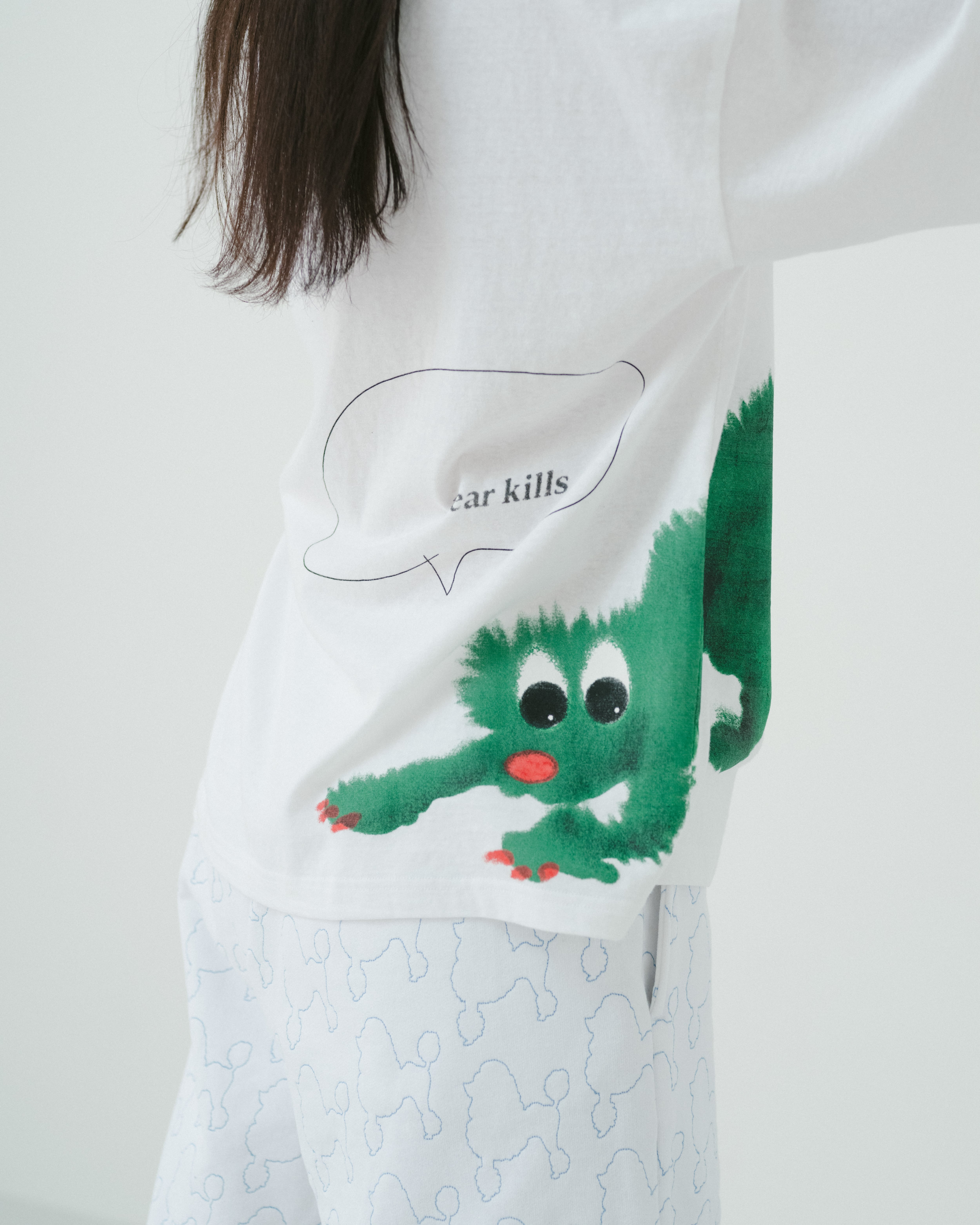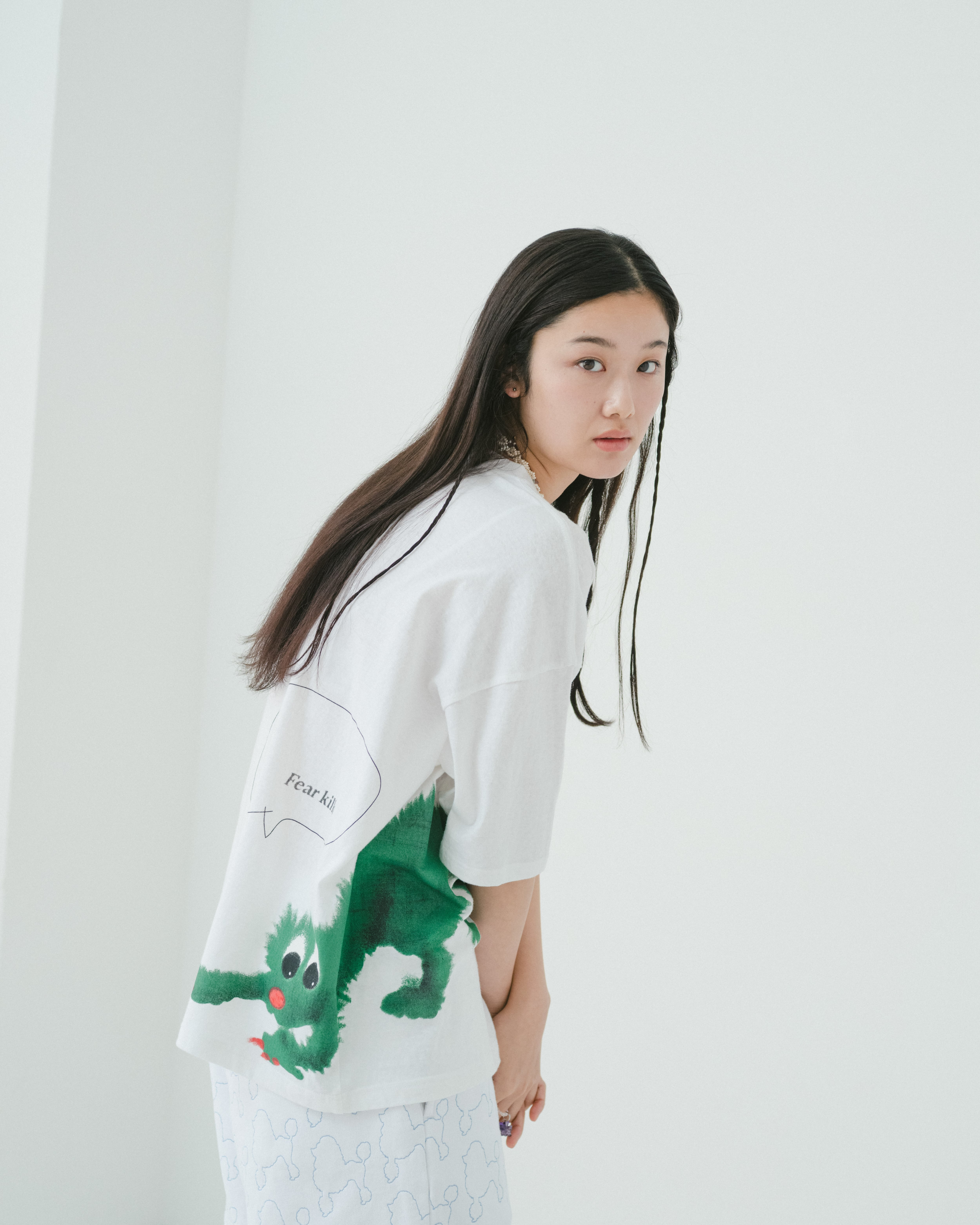 綿の落ち綿を使用して作られた、自然なムラ感とラフな風合いが特徴の天竺。落ち綿由来の柔らかい手触りがあり、洗うとふっくら感が増すのが特徴。