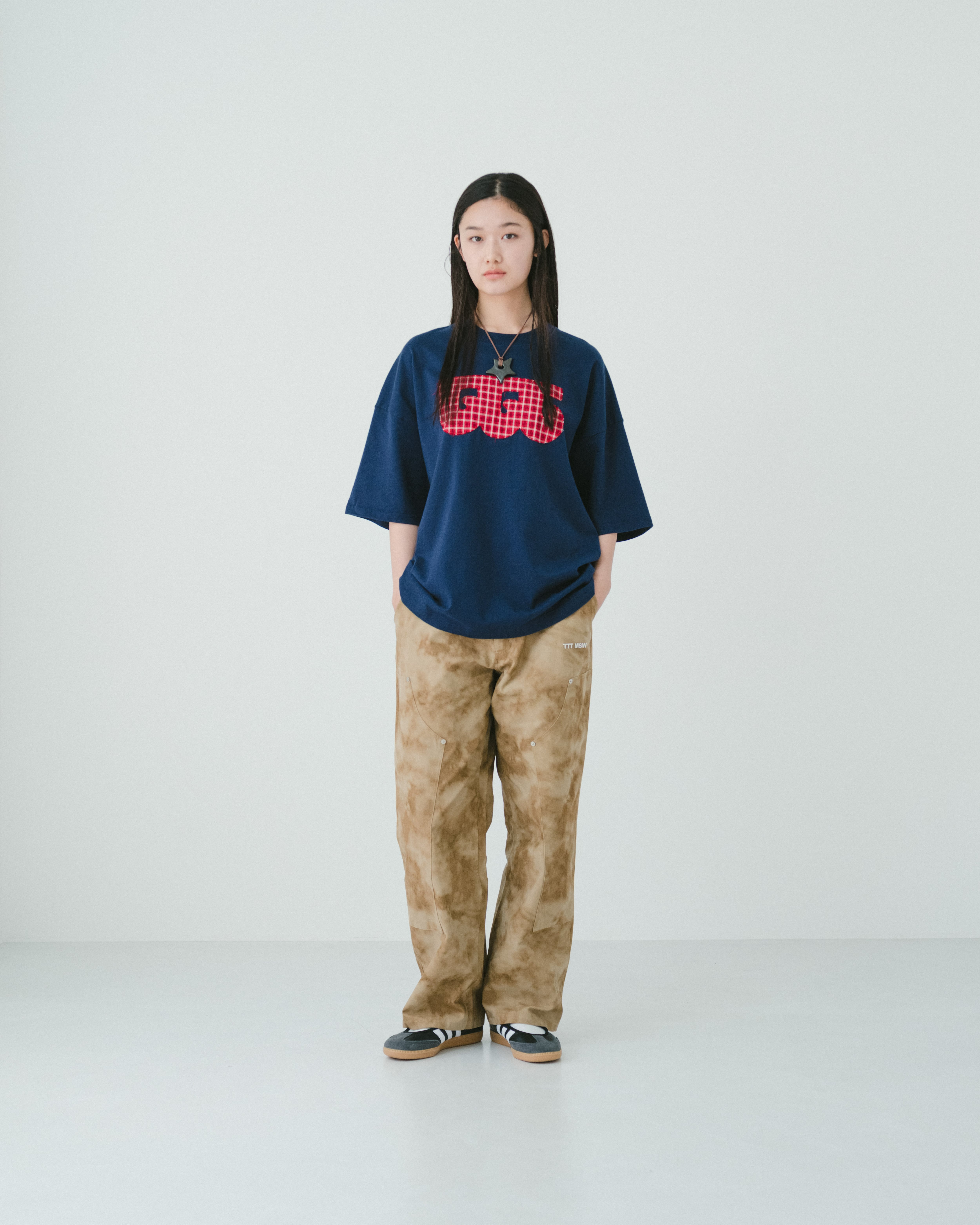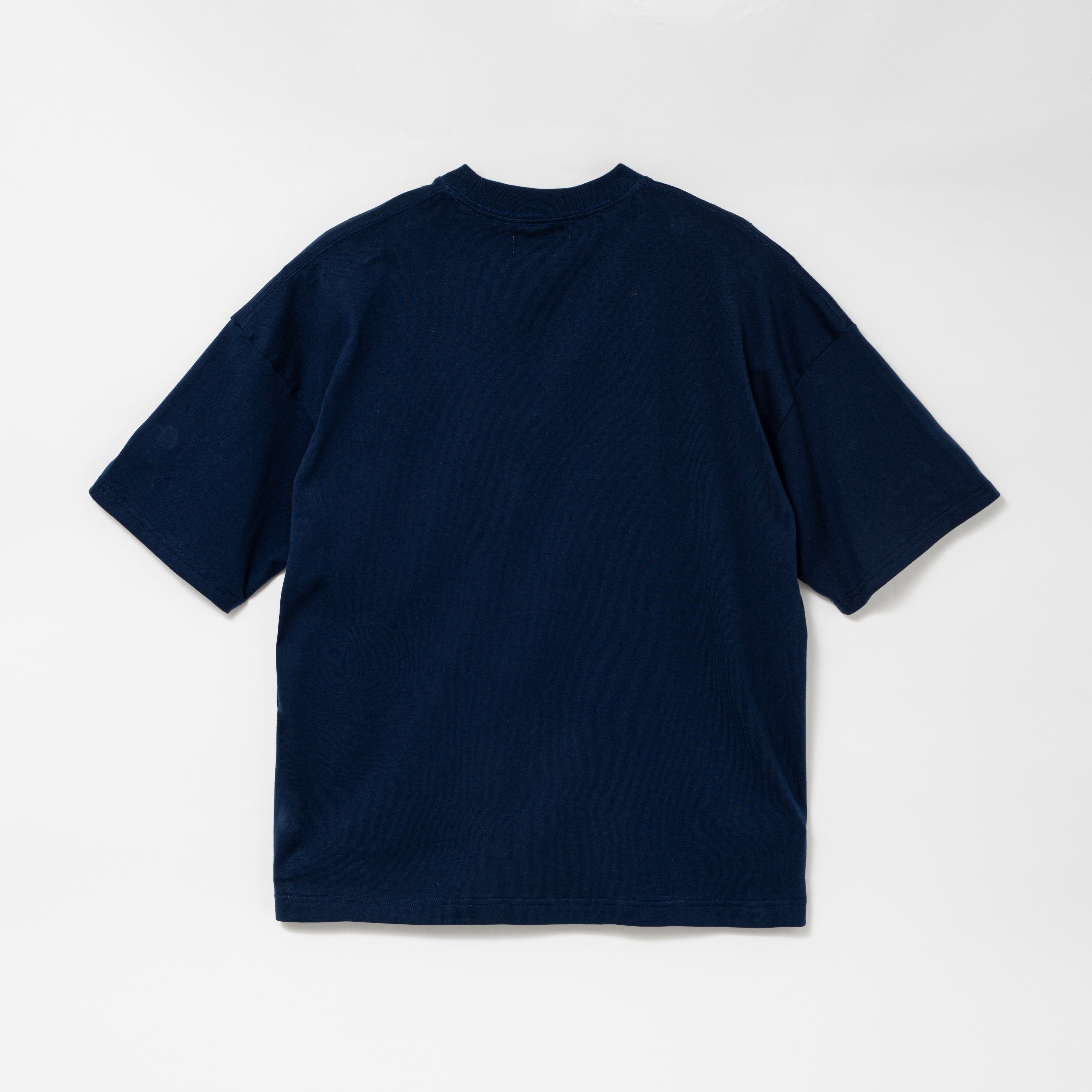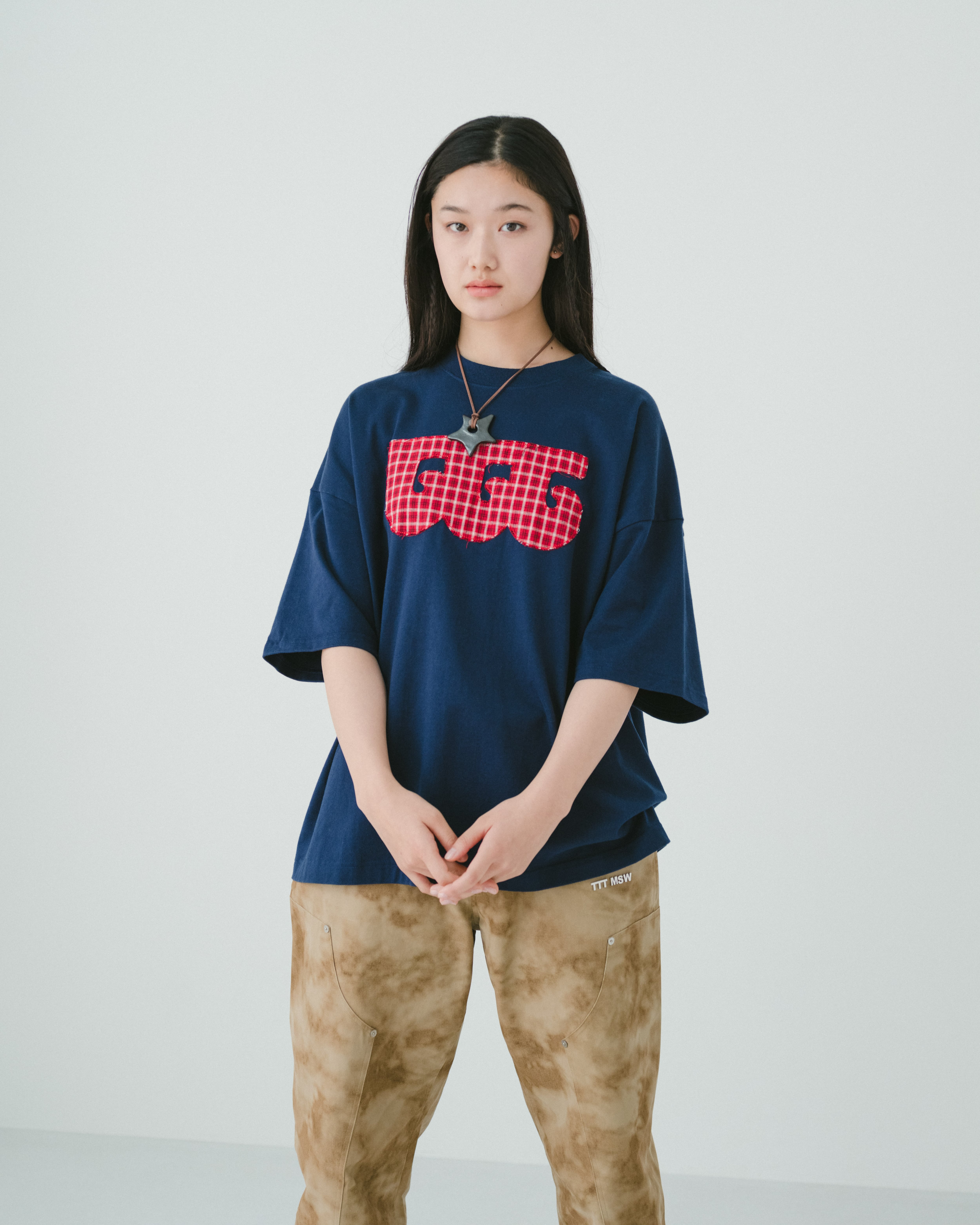 太番手の糸を使用し、度目を詰めたしっかりとした肉感が特徴の天竺。ロゴは、プリントではなく別生地をたたきつけているのがポイント。